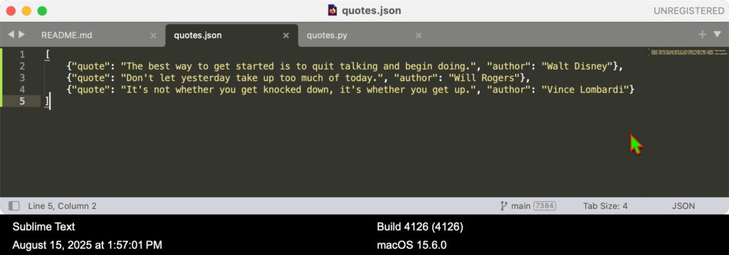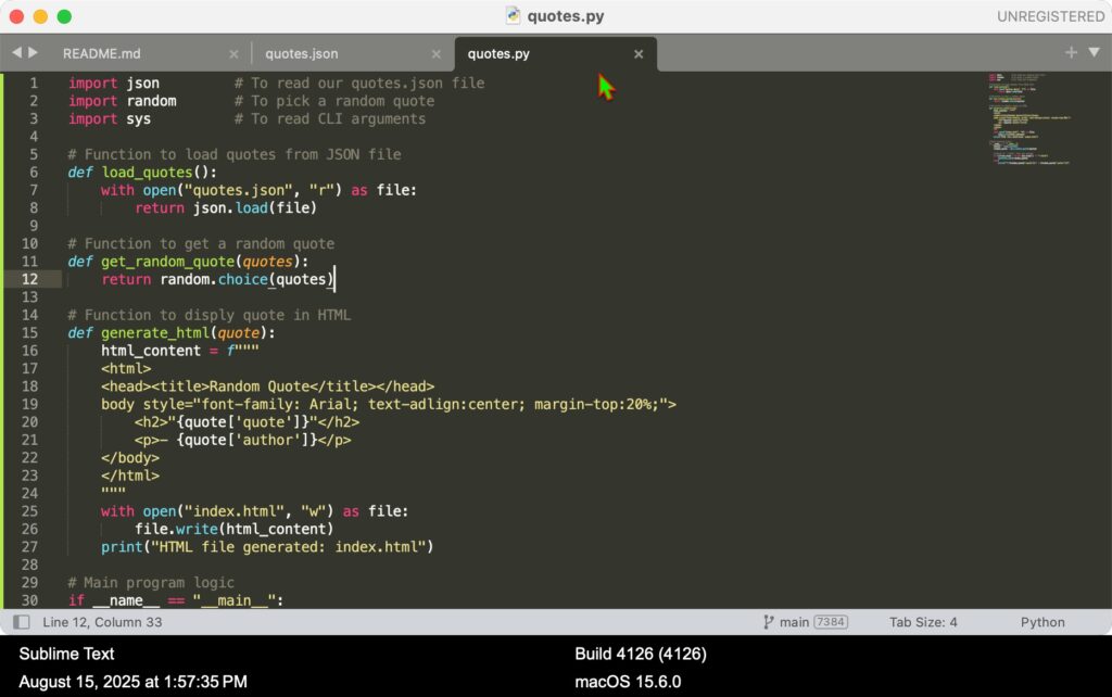 2. HTML Mode: Run python3 quotes.py --html to generate a clean index.html page with your quote.